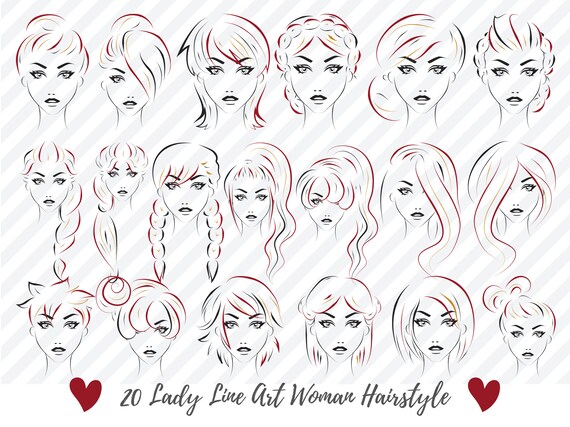 20 Lady Line Art Svg Women Face Svg Hairstyle Bundle Svg Etsy Australia